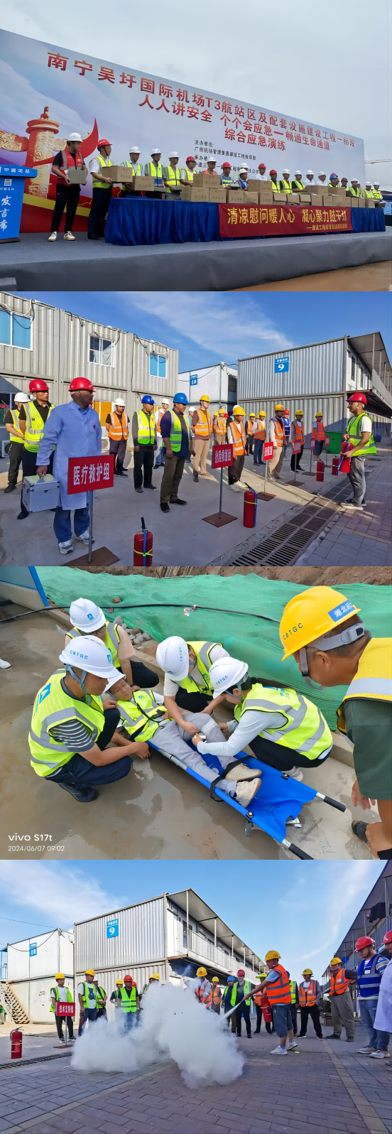 為檢驗(yàn)和提高管理人員、作業(yè)人員應(yīng)急能力和水平,鍛煉隊(duì)伍,完善機(jī)制,預(yù)應(yīng)力工程事業(yè)部南寧吳圩國(guó)際機(jī)場(chǎng)T3航站樓工程、華北分公司廣東電網(wǎng)裝修項(xiàng)目、機(jī)電工程分公司無(wú)錫酒店商辦機(jī)電工程、西北分公司宜昌EPC工程總承包項(xiàng)目等各在施項(xiàng)目組織或參與消防、防汛、高處墜落等應(yīng)急救援演練,進(jìn)一步增強(qiáng)了員工應(yīng)急處置能力。