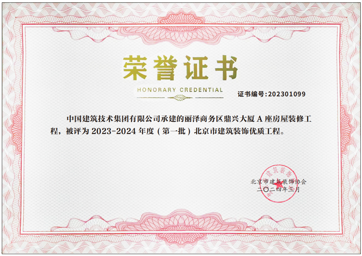 近日,由中國建技承建的麗澤商務(wù)區(qū)鼎興大廈A座房屋裝修項(xiàng)目、北京大學(xué)醫(yī)學(xué)部圖書館工程施工總承包項(xiàng)目和北京市海淀區(qū)豐豪東路9號(hào)院中創(chuàng)芯中心某公司改造項(xiàng)目榮獲2023-2024年度(第一批)北京市建筑裝飾優(yōu)質(zhì)工程獎(jiǎng)。