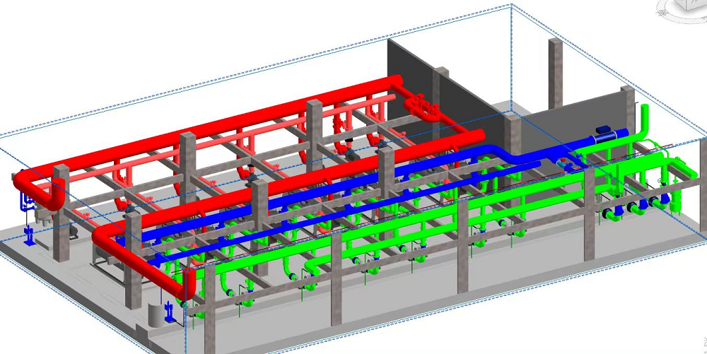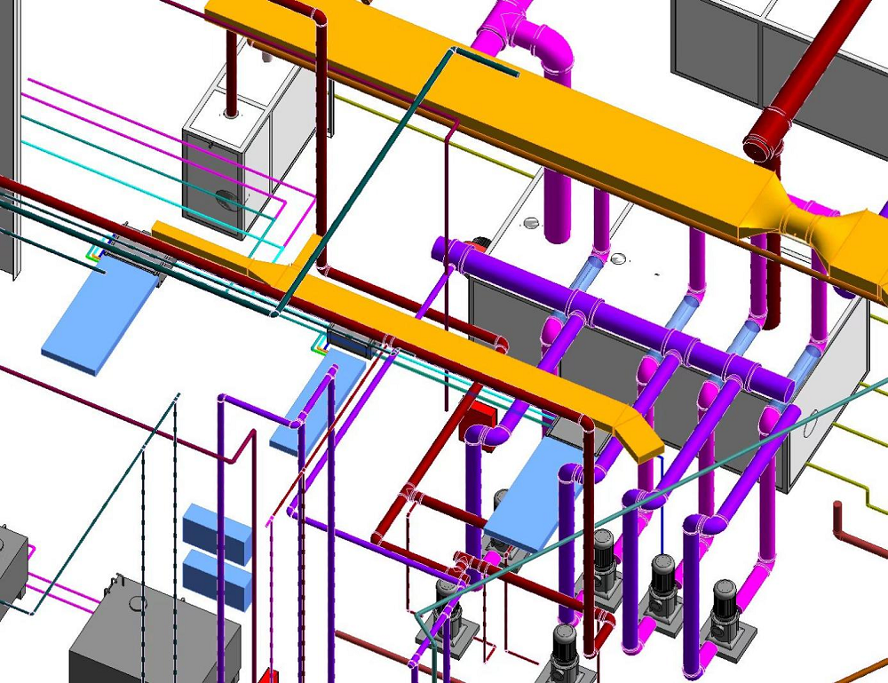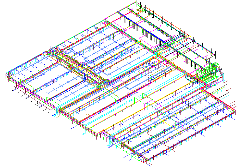 BIM技術:在項目施工前,利用BIM技術提前對廠房的各系統(tǒng)路由進行了優(yōu)化、排布,這樣不僅在工期上節(jié)約了時間,在經濟方面更起到了降本增效的良好作用。通過BIM技術應用,施工人員結合BIM模型查看圖紙,能夠更形象地理解圖紙設計意圖,也能及時發(fā)現(xiàn)設計圖紙中存在的問題,避免在施工過程中出現(xiàn)返工現(xiàn)象,有效提升了項目履約水平。永臨結合技術:項目臨電、照明采用永臨結合技術,通過將廠房臨電系統(tǒng)與照明系統(tǒng)結合安裝,避免了傳統(tǒng)照明系統(tǒng)需要再次布線的問題,減少了施工時間和成本,可以避免臨時照明器材的頻繁更換和維護,節(jié)約人力成本和材料成本,從而實現(xiàn)臨電永久化和照明效果的提升。機電消聲減振綜合施工技術:項目通過采用機電消聲減震綜合施工技術,有效地降低機電設備的噪聲和振動,提高設備的使用效率和安全性。在機電設備的安裝和維護過程中,綜合運用消聲技術、減震技術和綜合施工技術來降低噪聲和振動。
