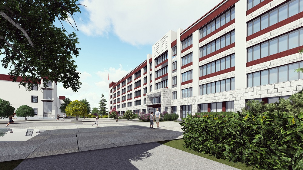 校園的原創(chuàng)形態(tài)以文化為底蘊,以城市設計及周邊城市肌理為藍本,以功能為核心,以軸線為重點,方正有秩,主次分明。同時受邊界、河流影響引入自然導向構圖,以此形成整個校園的規(guī)劃結構。這樣的結構,形成了張與弛、疏與密、剛與柔并存,形式和空間相呼應的統(tǒng)一體,產生了校園的形式感與場所感,體現了井然有序、和諧天成的人文精神,并通過規(guī)劃結構的默契匹配使之成為被社會所認同的城市標志: