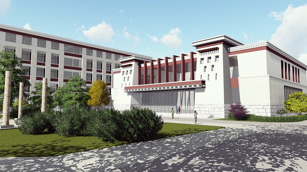 本項目位于日喀則經濟開發(fā)區(qū)內,辦學規(guī)模為36班的初級中學,包括教學樓、實驗樓、食堂、風雨操場、宿舍樓等建筑。規(guī)劃建設用地為56014.94㎡,總建筑面積34558.95㎡,其中地上建筑面積29505.67㎡,地下建筑面積5053.28㎡。本項目南、北、東、西側均為規(guī)劃道路,南側地塊為規(guī)劃薩嘎中學和崗巴中學。