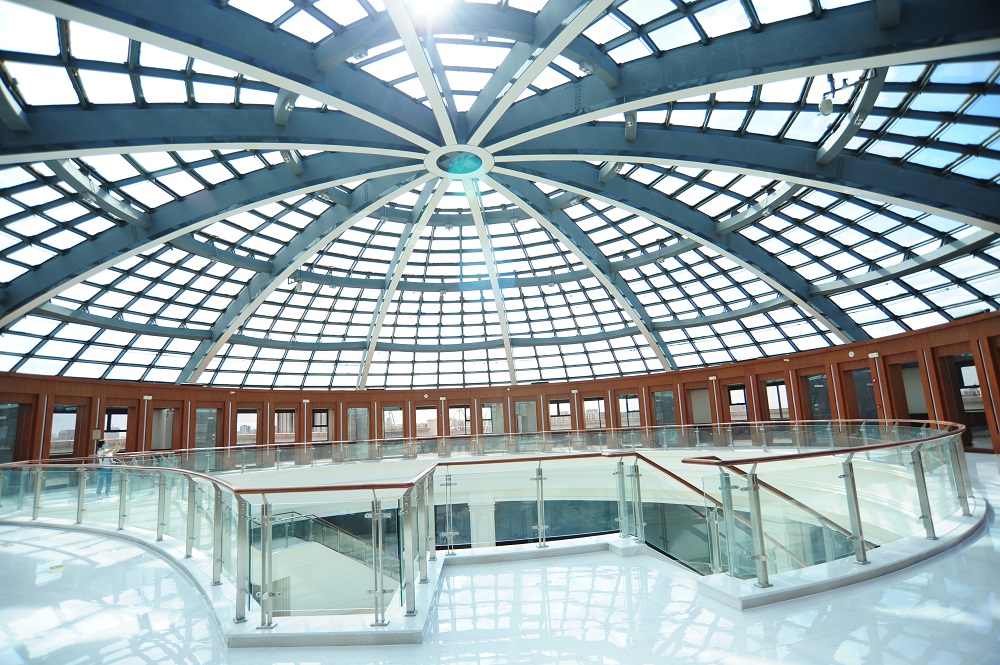 主體建筑長(zhǎng)55.8米,寬61.2米,高54米,體量集中緊湊。外立面造型簡(jiǎn)約、典雅,以中軸線東西對(duì)稱(chēng)布局的形式表現(xiàn)了建筑的端莊、神圣。外裝飾石材實(shí)體墻、柱廊、玻璃幕的虛實(shí)對(duì)比光影的變化,表現(xiàn)了建筑的藝術(shù)美和恢弘氣勢(shì)。四個(gè)立面設(shè)計(jì)的柱廊每面6根共24根柱式,代表了一年四季24節(jié)氣,春夏秋冬,四季常青,蘊(yùn)含著自然和生命的和諧,裝飾柱被譽(yù)為“生命和平柱”。
