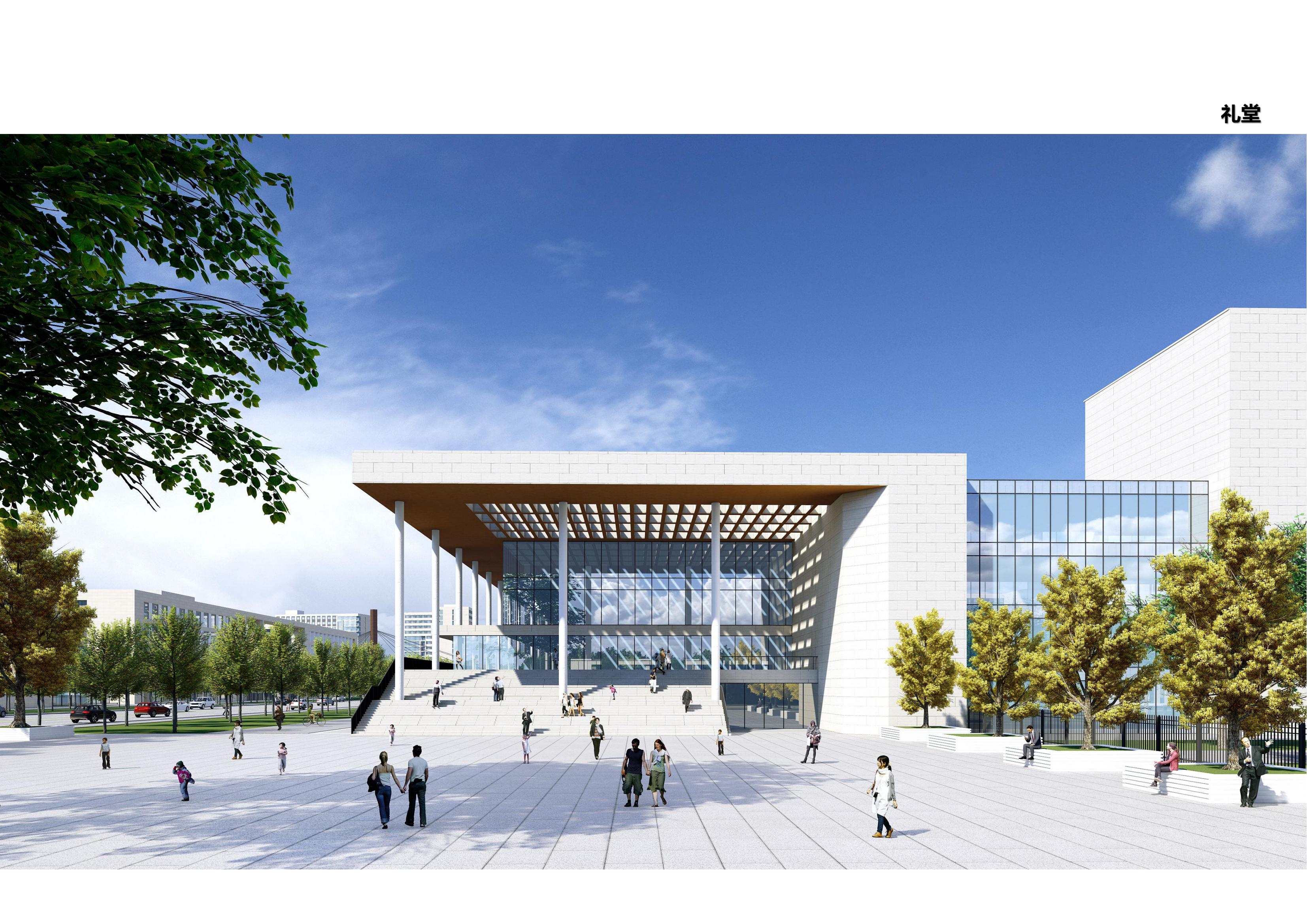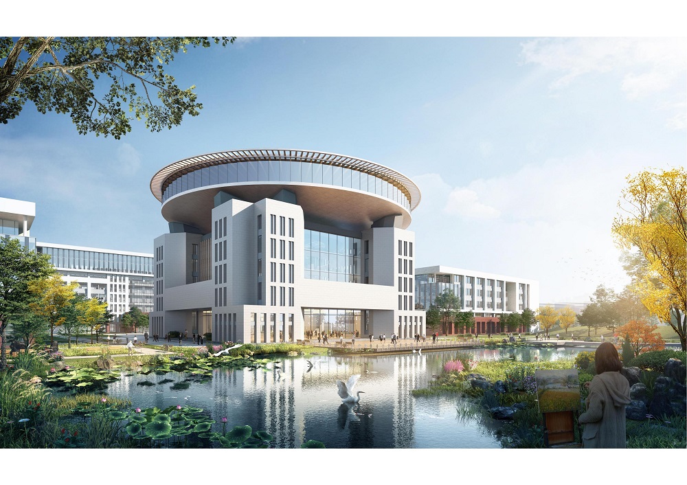項(xiàng)目核心文化建筑:圖書(shū)館與圖書(shū)綜合樓,采用左右對(duì)仗形式設(shè)置于東西校區(qū)中心位置。圖書(shū)綜合樓以“圓”為頂;圖書(shū)館以“方”為體,體現(xiàn)“天圓地方” 的中國(guó)傳統(tǒng)宇宙觀 。