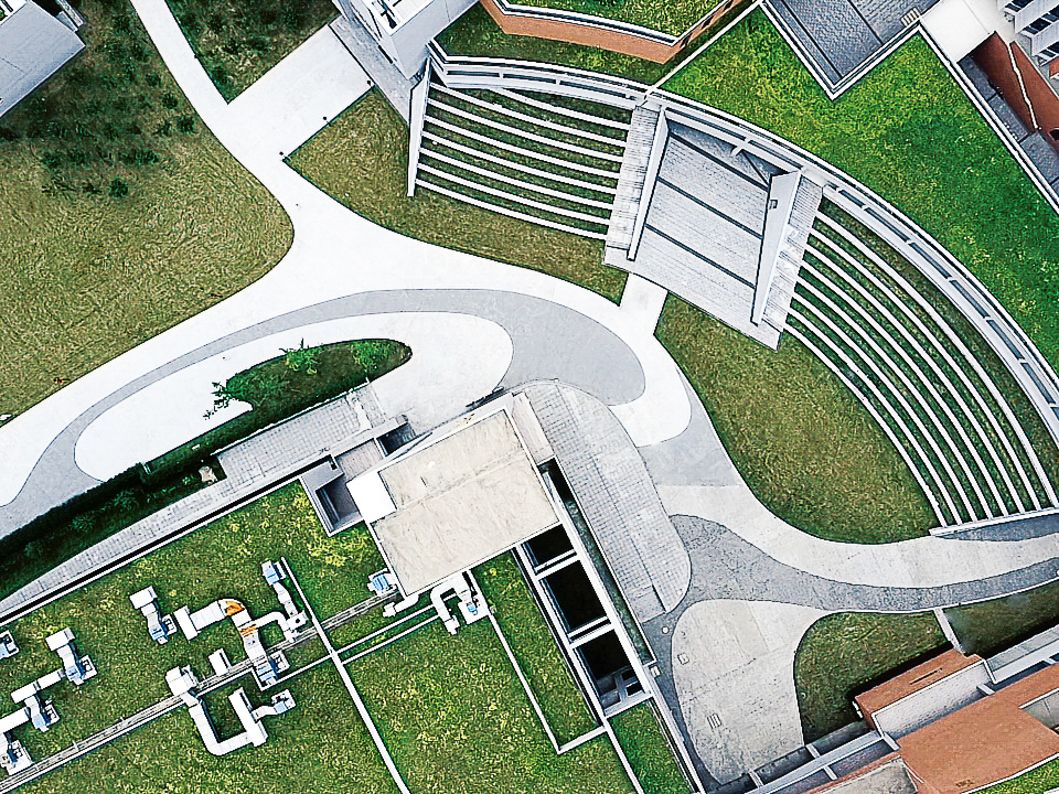 浦江源應是如水一樣的校園,有分有聚,并具備很強的流動性,故在規(guī)劃理念上,我們運用流動的景觀創(chuàng)造獨特而豐富的空間體驗,流動的景觀同建筑完美的結(jié)合在一起,共同形成上戲浦江源。浦江校園內(nèi)具有大量的演藝空間,放映廳,排練廳,室外劇場等,這些空間賦予這座校園最強烈的性格——一個綜合的實訓中心,我們考慮將這些空間設計成一個互相聯(lián)系的網(wǎng)絡,這個系統(tǒng)具備便捷的流線連接,呼應的視線連接,以及和室外景觀的結(jié)合,共同匯聚成浦江源?;趯λ杞ㄖδ艿姆治觯覀儗⒔ㄖM行了重新組合,將電視電影學院和圖文信息中心合并成一個學院綜合體,同實訓中心相連。將體育運動中心、食堂與學生教工公寓合并形成師生的生活組團。將行政樓、創(chuàng)意學院與基礎教學樓組合形成學校的教學實驗區(qū)。