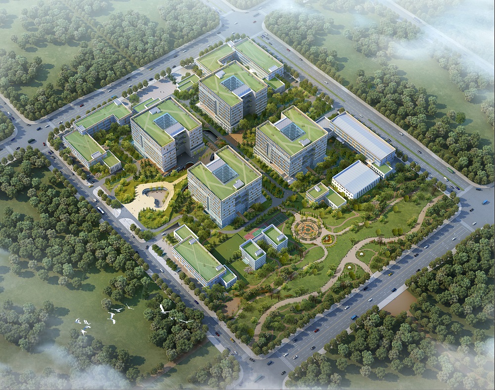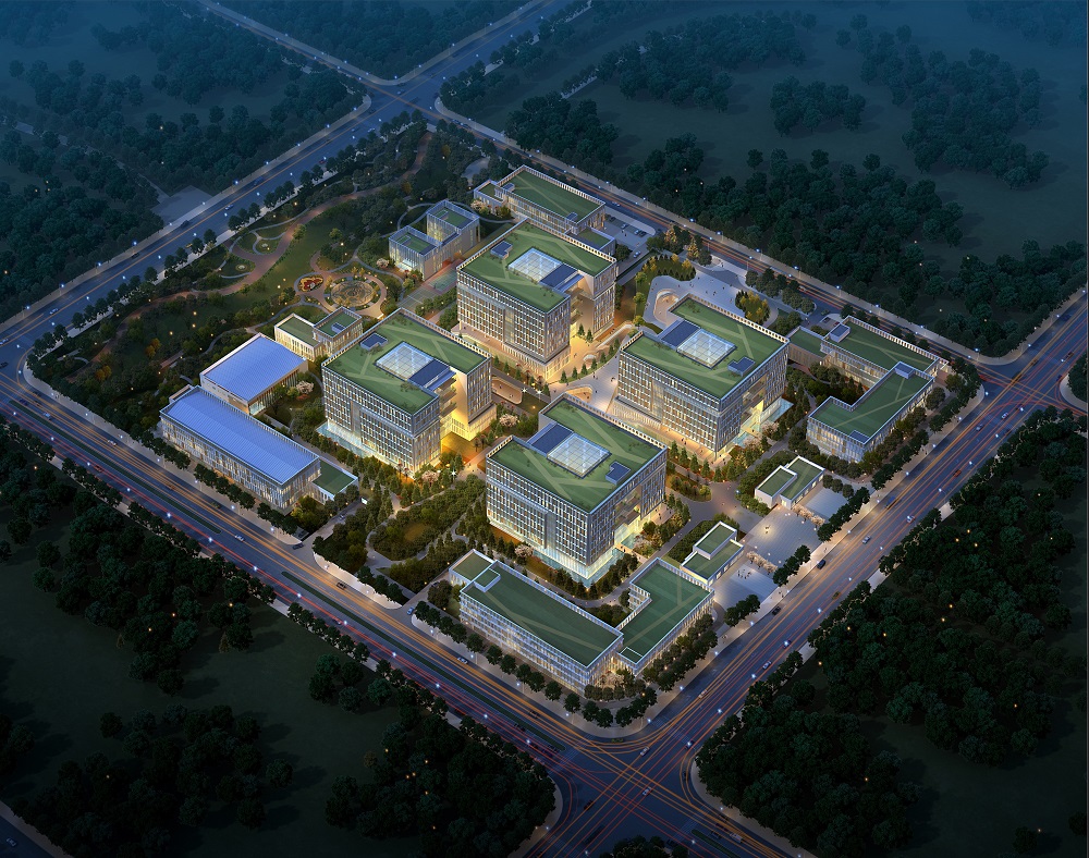 功能分區(qū):本項目設(shè)計將4棟39.4米高的主要研發(fā)辦公大樓放在場地正中,其它相關(guān)的辦公、實驗、服務(wù)配套等建筑圍繞在其中周。